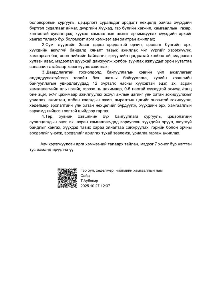 ЭРЧИМ ХҮЧНИЙ ЯАМНААС АЖЛЫН ХЭСЭГ ГАРЧ БАГАНУУР ДҮҮРЭГТ АЖИЛЛАЛАА
